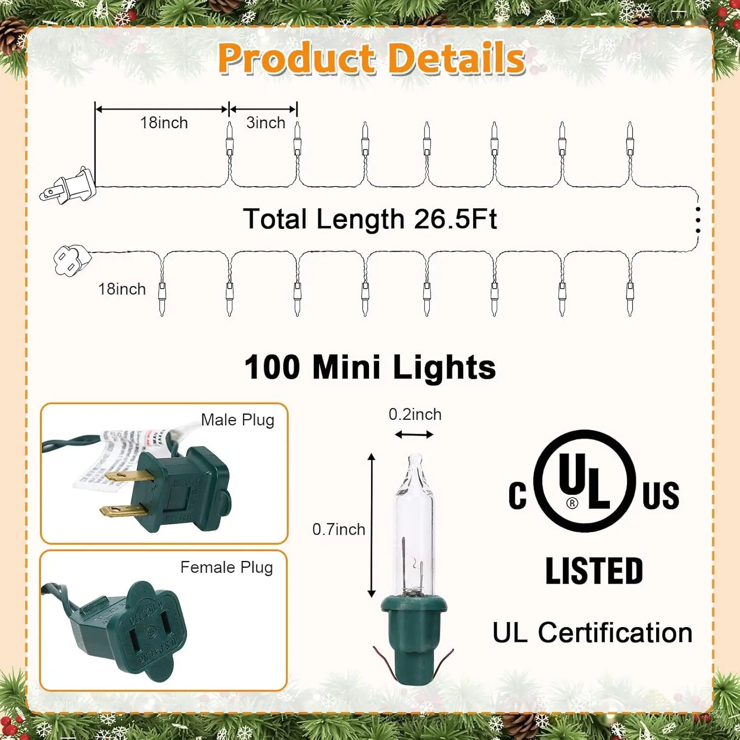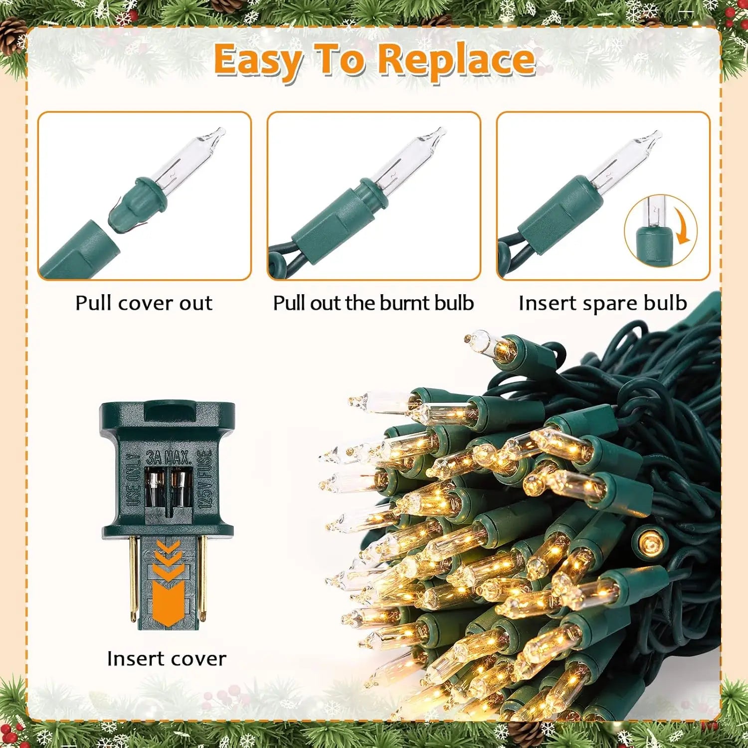 400 Counts 106Ft Warm White Christmas Lights, with Replace Fuse and Bulb, Waterproof, Indoor Outdoor Christmas Decoration