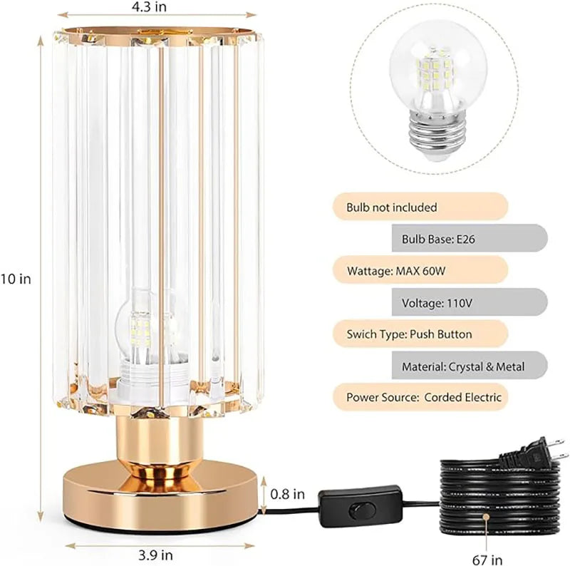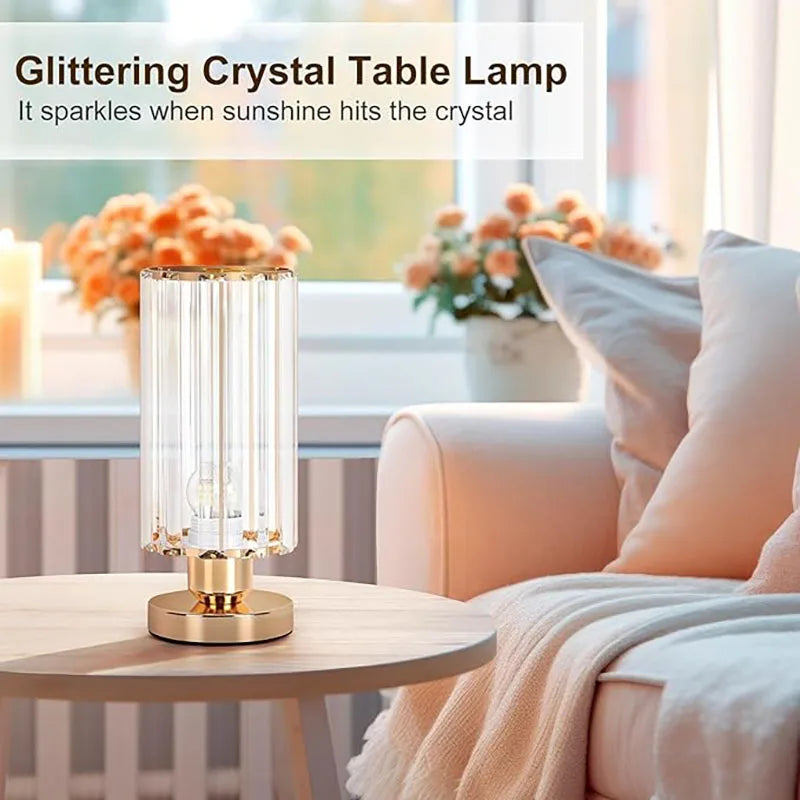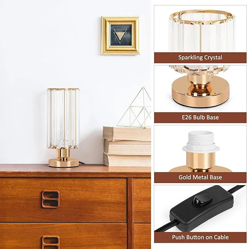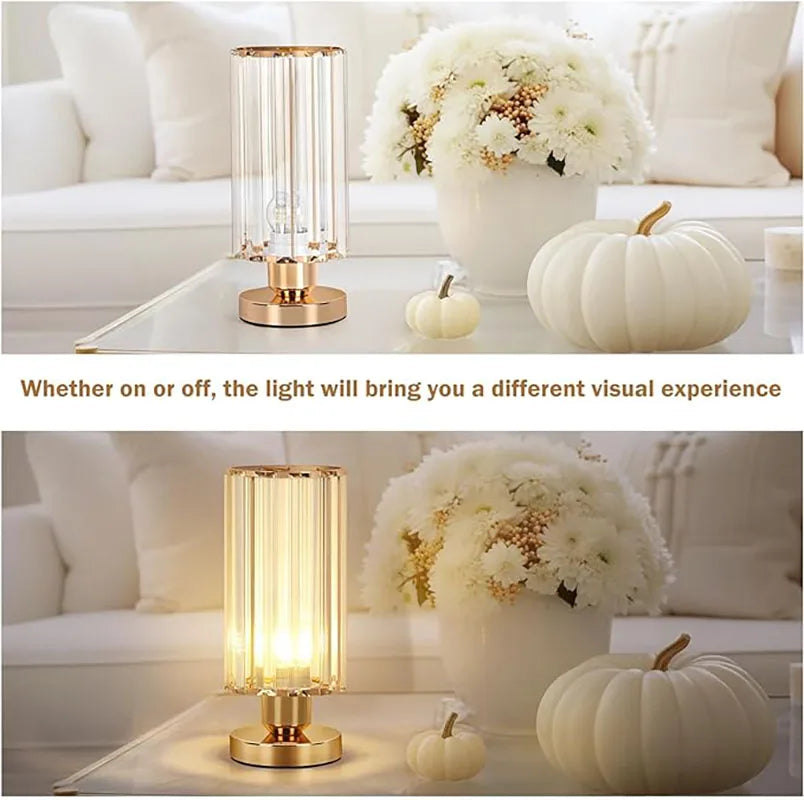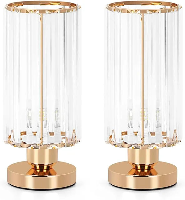 Modern Crystal Table Lamps Set of 2 Elegant Small Desk Lamps with Metal Base Classic Nightstand Bedside Lamp for Bedroom Living