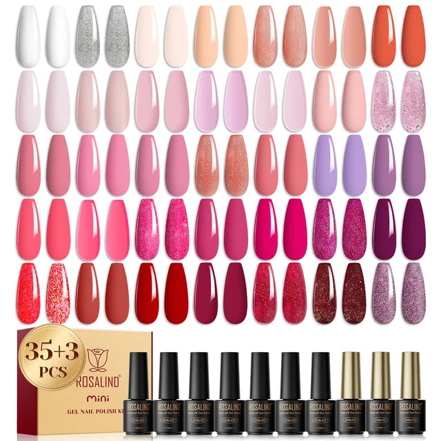 ROSALIND 38PCS Gel Nail Polish Set, 35 Colors Gel Polish Set with Base Coat and Glossy & Matte Gel Top Coat Gel Nail Polish Star